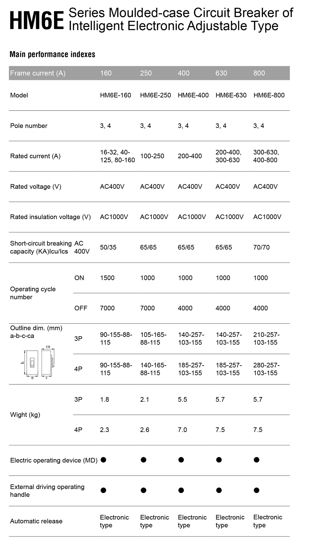 HM6E-160M MCCB Moulded Case Circuit Breaker