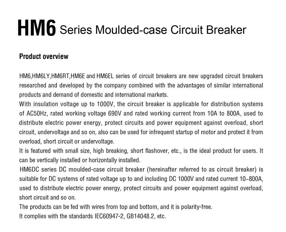 Product Show>>MCCB Moulded Case Circuit Breaker :MCCB HM6EL-400H Moulded Case Circuit Breaker>> VECAS ELECTRIC (GROUP) CO., LTD.