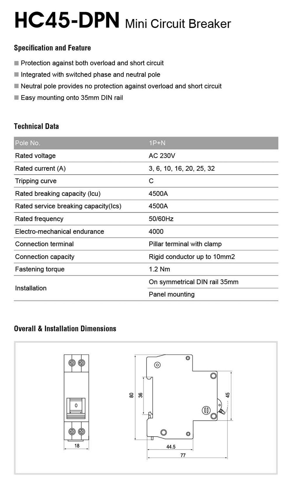 HC45-DPN Mini Circuit Breaker
