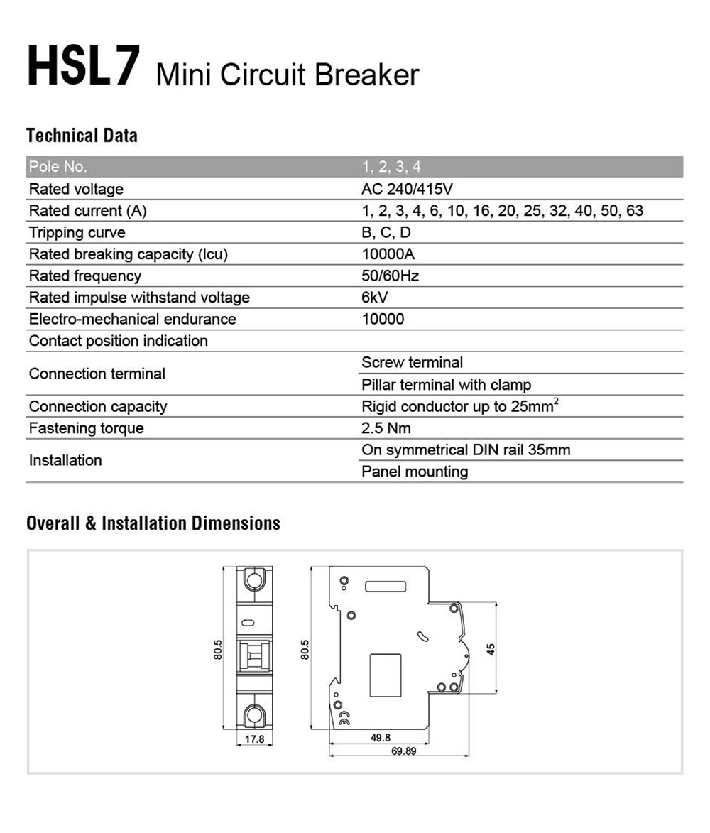 HSL7 2P Mini Circuit Breaker