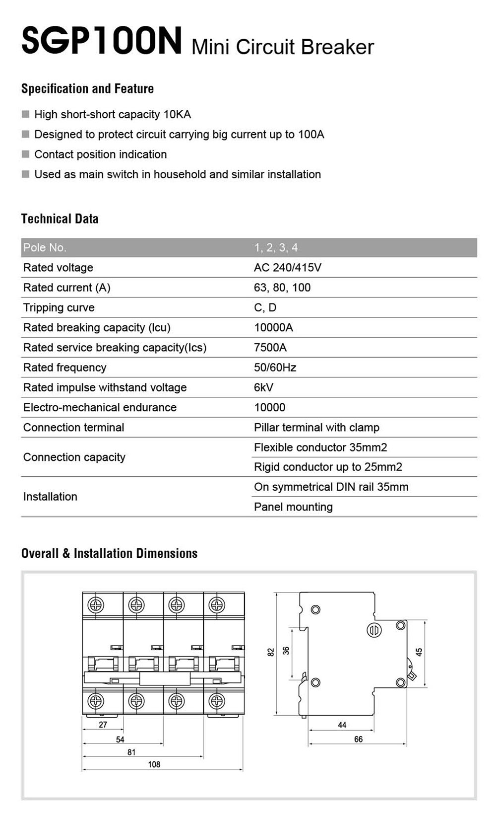 SGP100N 2P Mini Circuit Breaker