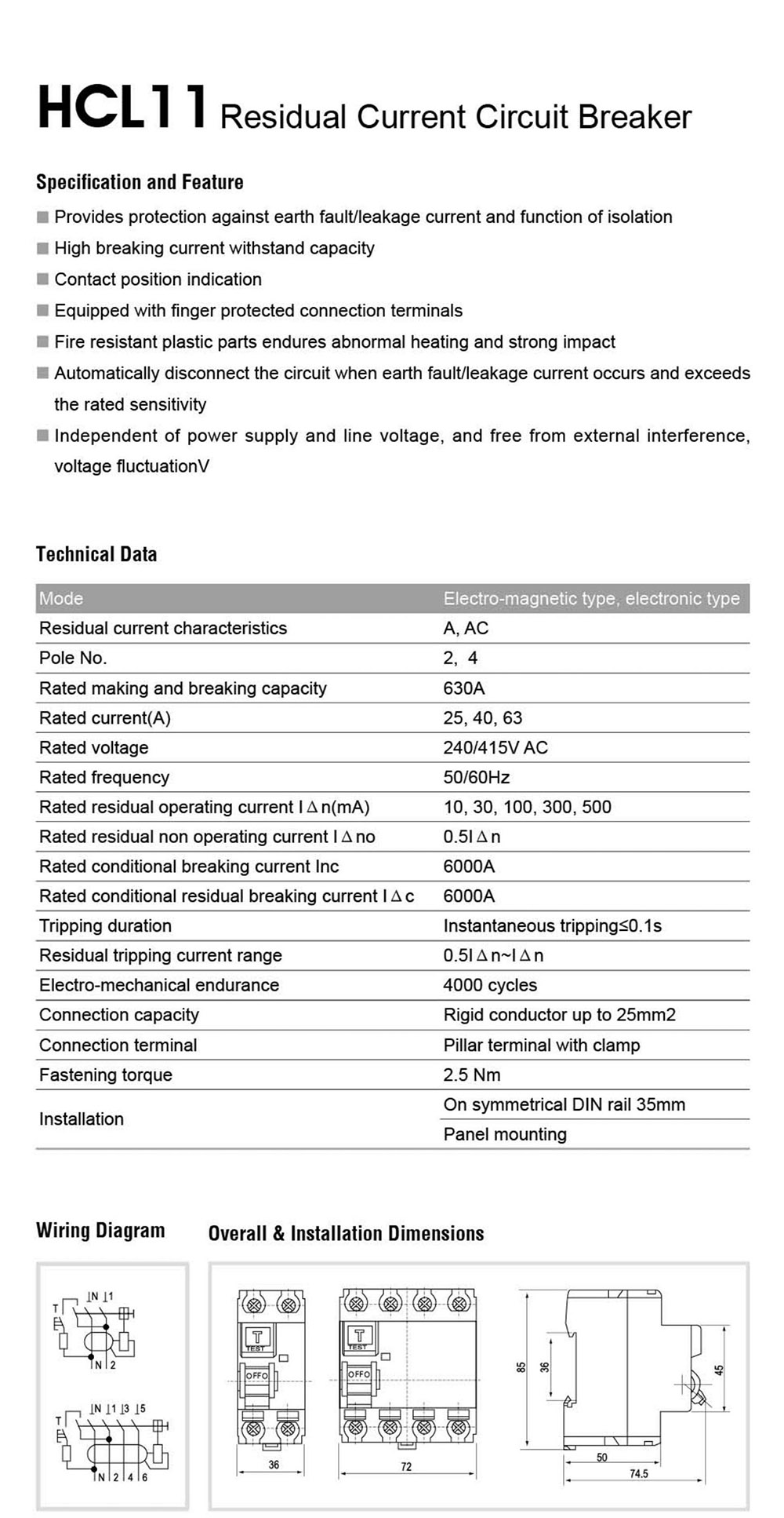 HCL11 2P Residual Current Circuit Breaker with Overcurrent Protection