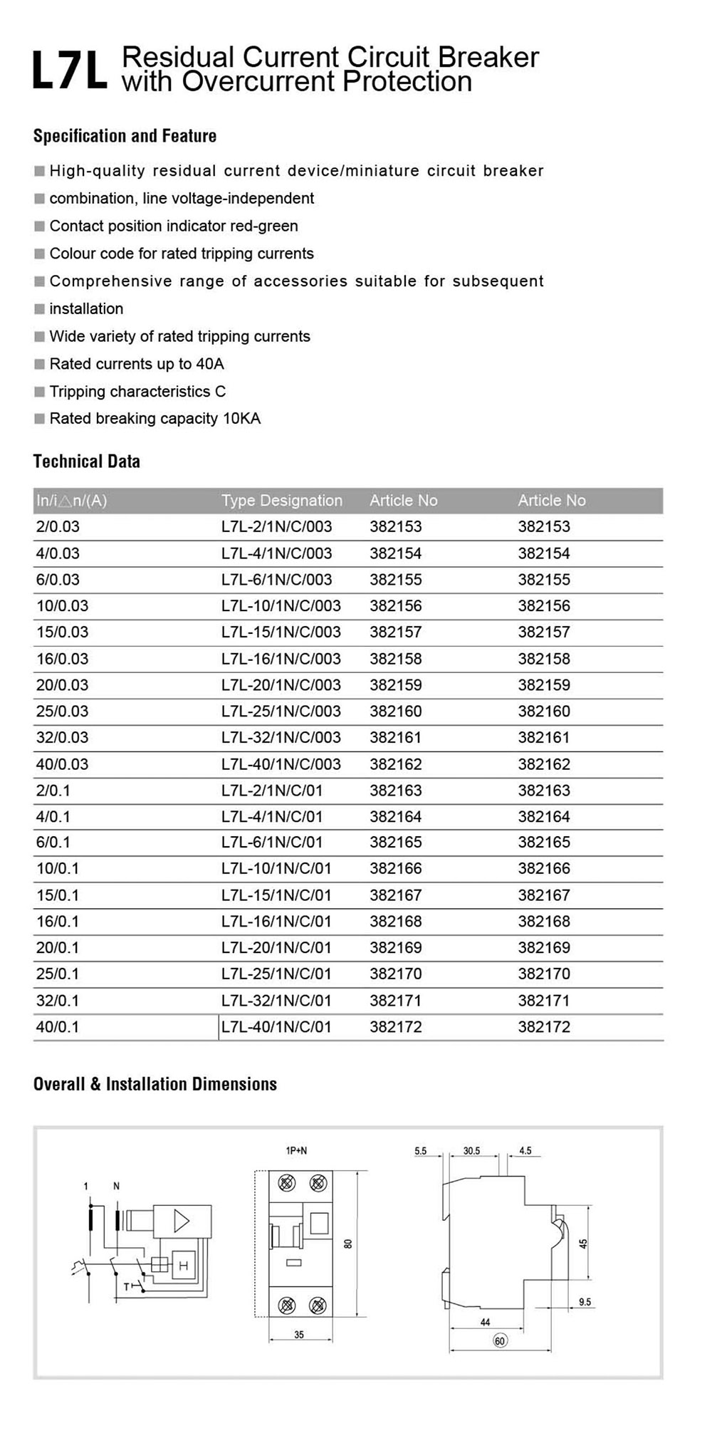 L7L-40 Residual Current Circuit Breaker with Overcurrent Protection