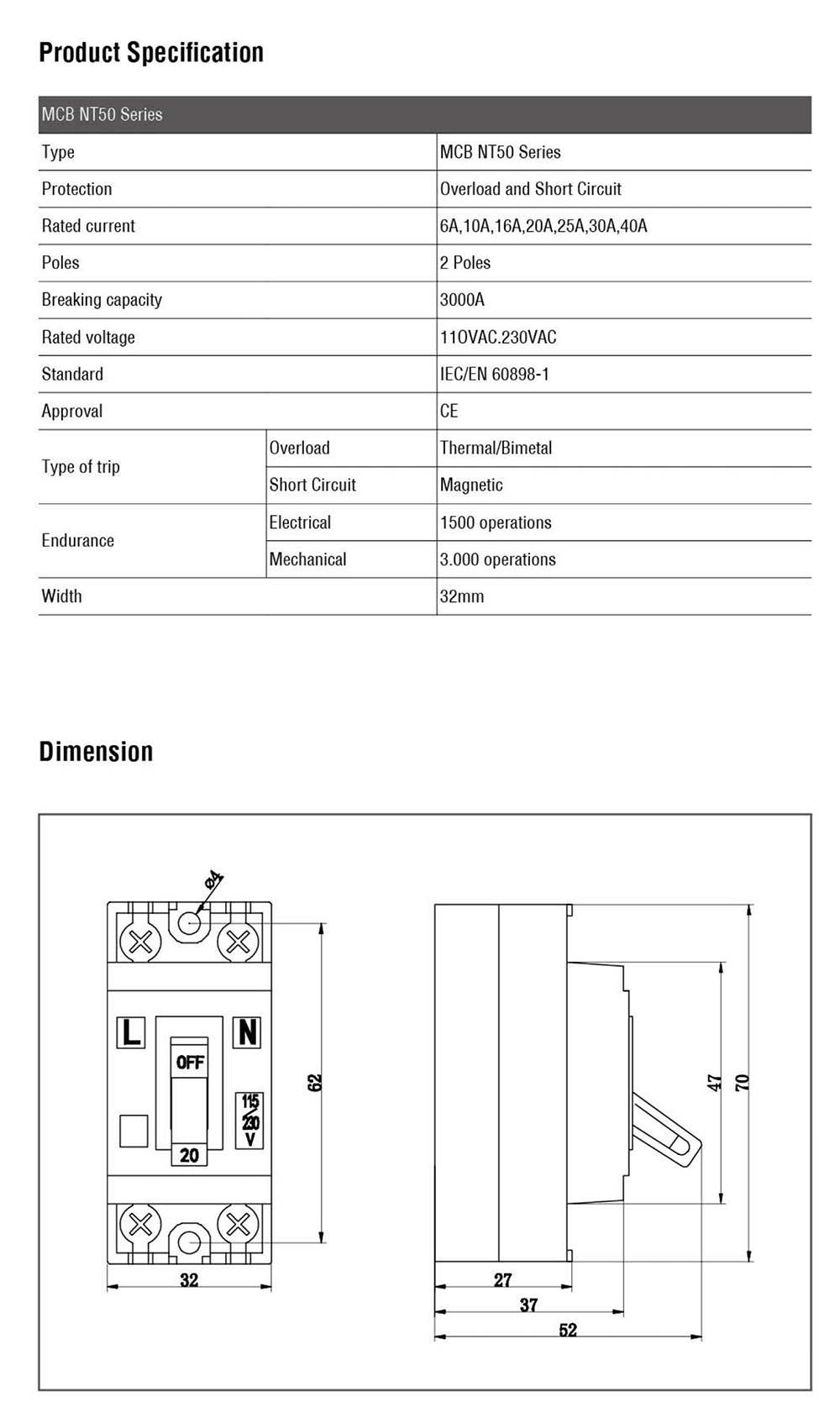NT50-B Mini Circuit Breaker